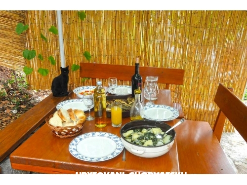 Die Wohnungen befinden sich in einem kleinen, ruhigen Fischerdorf , die Oberfläche jeder App 40m2, mit Garten von 1000m2, einem Balkon mit Meerblick , 25 m entfernt, mehrere Arten von abgelegenen Stränden innerhalb 50m, mit dem Grill neben der Wohnung, die tägliche Fahrt zum Meer in Angeln mit dem Eigentümer, frischer Fisch, lokalen Gemüse, Wein und verschiedene Produkte aus Trauben, geräucherter Schinken, Käse, täglich frisch gebackenes Brot für seine Gäste ausschließlich gebacken, verschiedene ausschließlich Fischgerichte und viel Mühe Gäste zu Mljet mit glücklichen Erinnerungen gehen zu hosten und nicht vergesslich Erinnerungen.