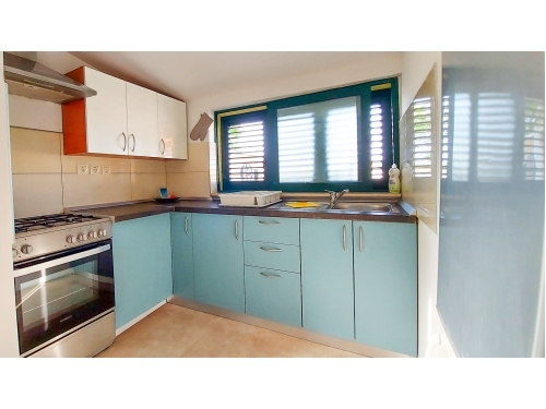 Ferienhaus erste Reihe zum Strand - ideal für einen Familienurlaub 2 + 2. Dieses freistehende Haus mit eingezäuntem Garten, Terrasse und Grill gehört Ihnen und der Genuss kann beginnen! Das Strandhaus 'Amarella' verfügt über zwei Schlafzimmer - ein Doppelbett in einem und ein Etagenbett im anderen Zimmer (für Kinder). Das Wohnzimmer verfügt über ein Zustellbett und einen Fernseher. Der Essbereich verbindet das Wohnzimmer mit einer offenen Küche. Das Haus verfügt über Klimaanlage, Internet, alle Geräte für einen Familienurlaub (Herd, Kühlschrank, Gefrierschrank, Waschmaschine) und Parkplatz. Der beste Teil ist der umzäunte Hof und die Terrasse mit Grill, auf der Sie wahrscheinlich die meiste Zeit verbringen werden. Der Mietpreis beinhaltet auch zwei Liegestühle. Ein kleines Haus für einen schönen Urlaub!