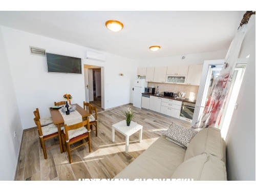 Apartments direkt an der Küste, mit einer schönen Terrasse und schöne Sonnenuntergänge . Kostenlose Nutzung von Fahrrädern und Freizeiteinrichtungen, kostenlose Parkplätze in jeder Wohnung zur Desinfektion von Desinfektionsmitteln und abenteuerlichen Futtermitteln