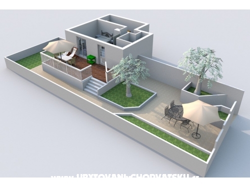 Die Wohnung ist komplett ausgestattet für einen angenehmen Aufenthalt für 4 Personen ausgestattet. Apartment hat ein Doppelbett und zwei Einzelbetten für eine Person, ist es klimatisiert, auf den Windows sind Netze gegen Insekten, die TV (zu diesem Zeitpunkt nur mit kroatischen Programme). In der Küche gibt es einen Gasherd, eine Mikrowelle, einen großen Kühlschrank und allen notwendigen Geschirr und Besteck. Die Gäste haben Zugang zu einer Waschmaschine, Bügeleisen und Fön. Bettwäsche und Handtücher werden gestellt. Im Bedarfsfall ist es möglich, das Bett im Raum zu platzieren.