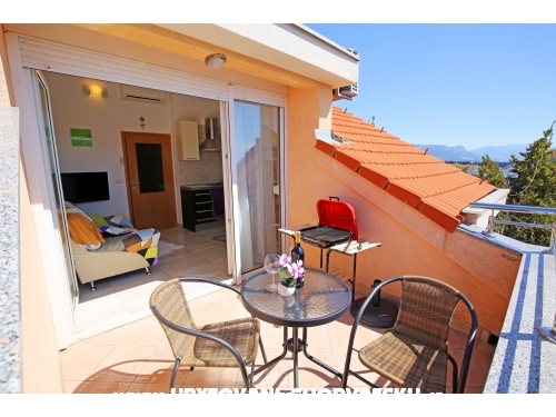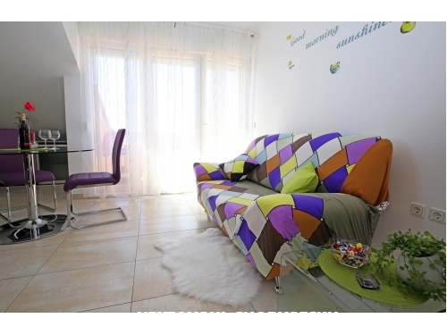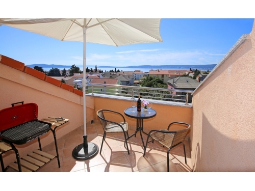Wohnung besteht aus zwei Schlafzimmern mit Doppelbett in jedem, Küche mit Esszimmer und Wohnzimmer, Bad und Terrasse mit schöner Aussicht auf die Stadt und das Meer. Wenn sich die große Balkontür öffnet, kann die Terrasse zu einem festen Bestandteil der Küche werden und als Sommeressraum dienen. Es gibt auch einen Grill, der allen Gästen zur Verfügung steht.