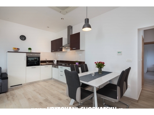 *** \ **** Wohnungen befindet sich auf der letzten Etage des Familienhauses mit einem wunderschönen Panoramablick auf die Adria, Split und Trogir. Neue, modern eingerichtete und ausgestattete Apartments in einer ruhigen Umgebung sorgen für Ruhe und Komfort für einen unvergesslichen Urlaub.