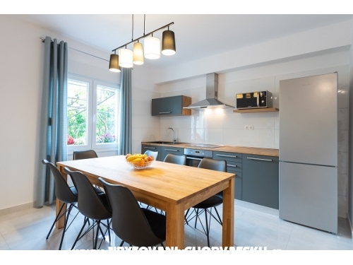 Die Anlage befindet sich an der Kaštela Riviera in K. Stafilic, 6 km von Trogir entfernt. Es ist nur 150 m vom Strand entfernt und es gibt mehrere wunderschön dekorierte Kiesstrände in der Nähe. Das Zentrum des Ortes ist weniger als 300 m entfernt. Am Abend ist es angenehm, an der Riviera herumzulaufen, da alle sieben Schlösser mit einem Fußweg am Meer verbunden sind, auf dem im Sommer zahlreiche Kultur- und Unterhaltungsprogramme angeboten werden.