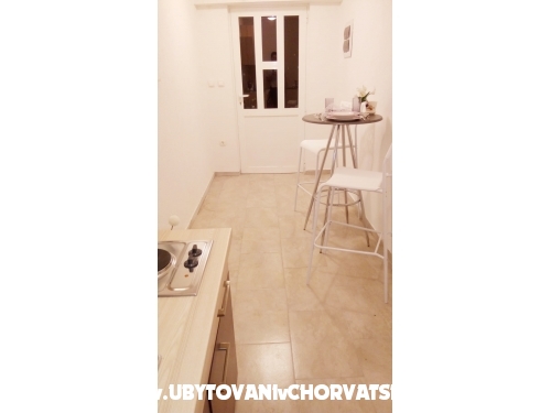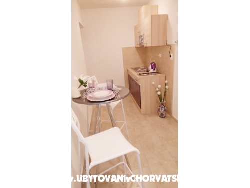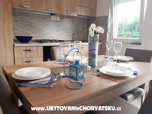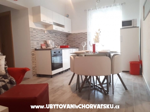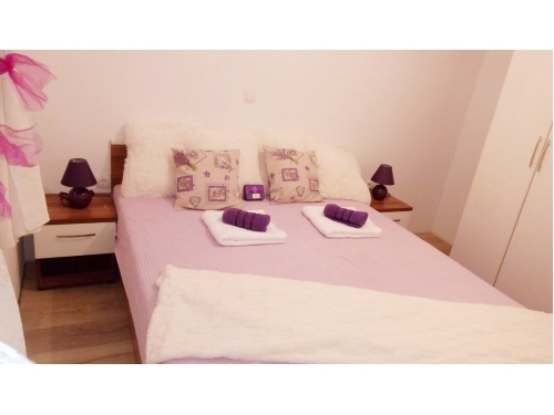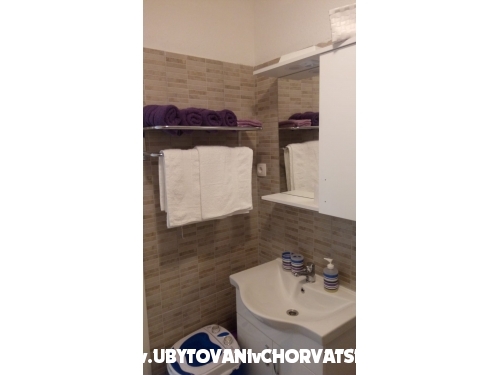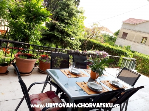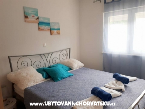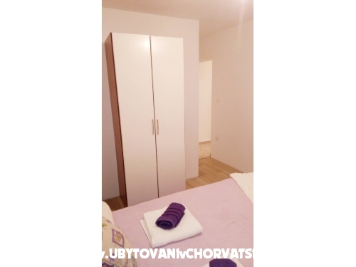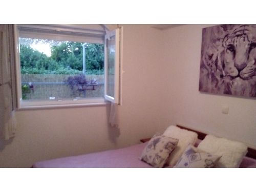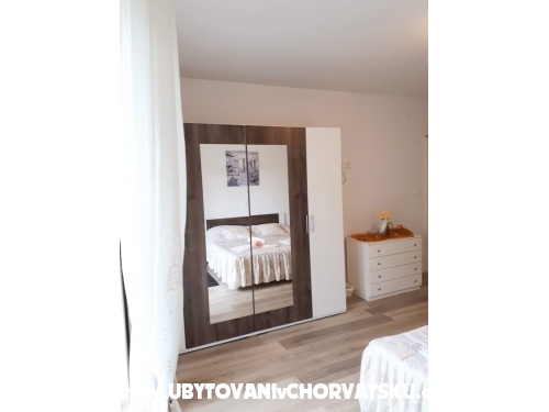Die Wohnung besteht aus zwei Schlafzimmern. In einem Zimmer befindet sich ein Doppelbett und ein zusätzliches Bett und ein weiteres Doppelbett im zweiten Schlafzimmer. Es gibt ein zusätzliches Bett im Wohnzimmer, das zum Schlafen gestreckt werden kann. Von der Küche und Wohnzimmer und von einem Schlafzimmer haben Sie Zugang zum Balkon in Richtung Garten. Die Wohnung befindet sich nahe dem Hauptstrand, Promenaden, Geschäften, Restaurants und anderen wichtigen Einrichtungen. Entfernung von Split ist 18 km, Trogir 8 km, Flughafen 3 km.