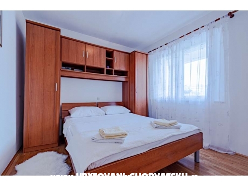 Die Apartments liegen 30 m von einem «privaten» Kies- und Sandstrand entfernt, der gegen stärkeren Wind mit einer allmählichen Meerestiefe geschützt ist. ein idealer Ort für Kinder zum Schwimmen. Beneth die Wohnungen, an der Straße, gibt es einen überdachten Privatparkplatz, während dort unten in der Bucht eine Anlegestelle für das Anlegen eines Bootes ist.