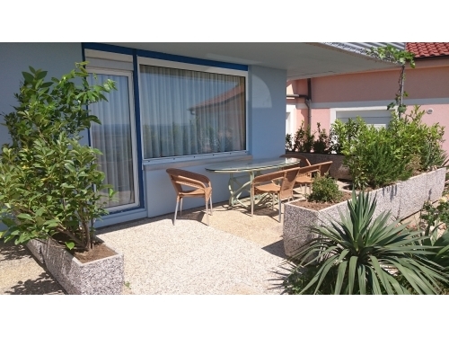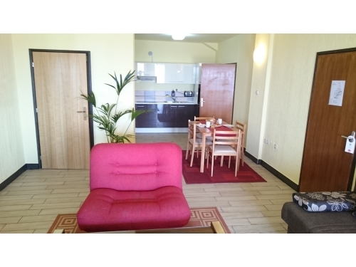 Wir bieten geräumige und komfortable Apartments unserem Familienhaus. Neben günstiger Unterkunft bieten wir Ihnen einen kostenlosen, eingezäunten und beleuchteten Parkplatz, Nutzung einer gemeinsamen Sommerküche in einer schönen überdachten Pergola mit Holztischen, Stühlen und Bänken und Fernsehen. Vor der Pergola liegt ein Schwimmteich mit einer Teichfläche von 100 m2, der mechanisch und biologisch gereinigt wird sodass es möglich ist darin zu baden.