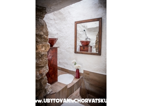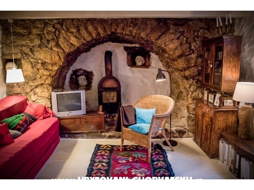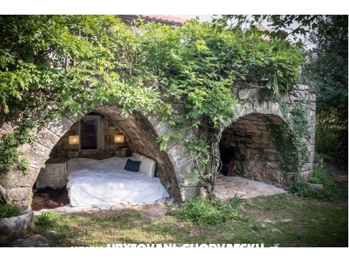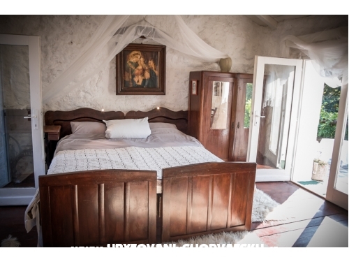 Ein kunstvoll restauriertes, altes Steinhaus mit Arkaden, 1100 m2 mediterraner Garten mit schattigen, gemütlichen Ecken, ein Außen-WC und Dusche, Außenwohnraum mit einem Kamin. Der Innenraum ist rustikal mit originalen, handgefertigten Möbeln und Keramik eingerichtet. Das Erdgeschoss verfügt über eine Küche mit Bäckerofen, Gas-Elektroherd, Kühlschrank, Warmwasserbecken, Waschmaschine, einen großen Tisch und ist mit dem Wohnzimmer verbunden, wo TV, HIFI und ein Bett sind. Im Obergeschoss sind zwei Schlafzimmer mit Doppelbett, ein Badezimmer, WC und zwei Terrassen. Neben diesen fünf Betten gibt es bei Bedarf noch 2 weitere.