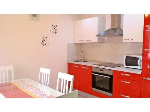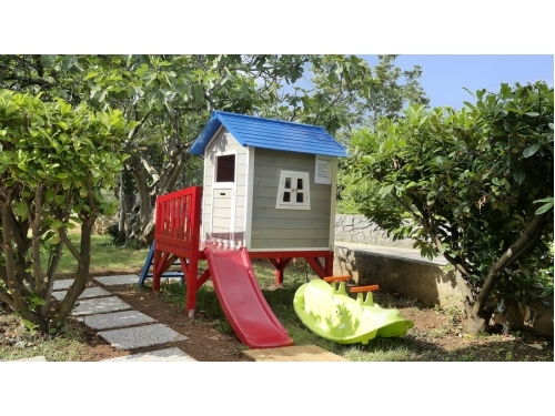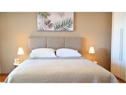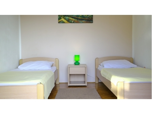 Im ersten Stock befinden sich drei Schlafzimmer und ein Badezimmer mit Badewanne und Waschmaschine. Zwei Schlafzimmer sind mit Doppelbetten und ein Schlafzimmer mit zwei Einzelbetten ausgestattet. Jedes Zimmer hat Klimaanlage und Sat-TV. Im ersten Stock befindet sich auch ein Balkon (25 m2), zwei Schlafzimmer haben einen Ausgang auf den Balkon. Ab 2022 hat das Haus einen Swimmingpool mit einer Größe von 25 m2 (Größe 6,60 x4,00 m, Tiefe 1,35 m). Beim Haus ist ein Parkplatz. Das Haus befindet sich nur 100 m vom Geschäft und 200 m vom Restaurant entfernt. Ebenfalls nur 150 m vom Haus entfernt befindet sich der moderne Fitnessraum, der das ganze Jahr über genutzt werden kann (nicht im Preis inbegriffen).