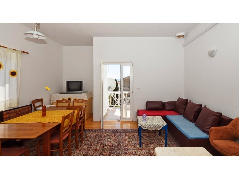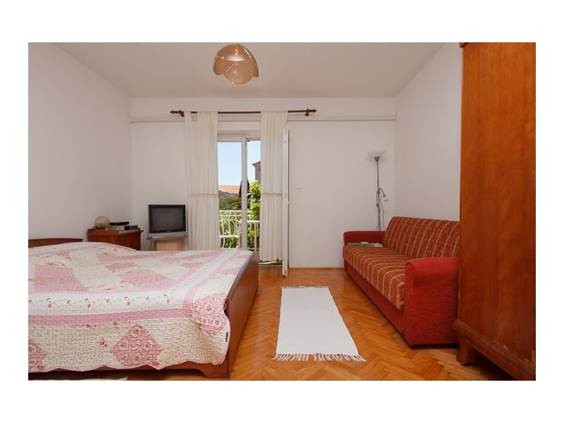Apartment 2 +1 hat ein Doppelbett und ein Sofa im Zimmer und 2 +2 Wohnung hat ein Schlafzimmer mit Doppelbett und ein Wohnzimmer mit Zusatzbett für 2 Personen, es gibt 2 Bäder, aber es gibt mo Balkon. Alle anderen Wohnungen haben einen Balkon.