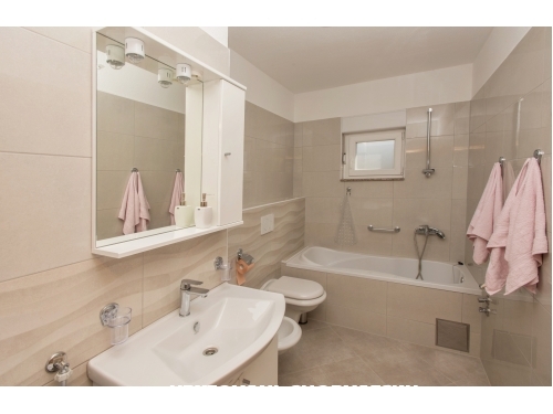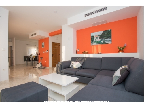 Das Haus liegt in einem ruhigen Teil der Stadt, auf einer Höhe von 95 Metern über dem Meeresspiegel, an den Hängen des Biokovo-Gebirges. Es ist 950 Meter vom Meer und 2 km vom Stadtzentrum entfernt. Das Haus ist für einen ruhigen Familienurlaub konzipiert. Es ist außerhalb der Stadt Hektik und ist ein idealer Ort für 6-8 Personen in jedem Apartment mit einem geräumigen und komfortablen Bereich.