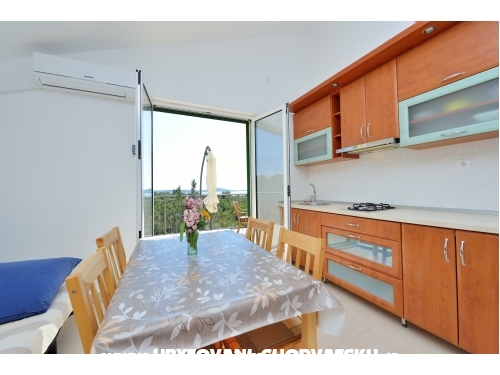 Neue Familienhaus mit zwei Wohnungen in der ersten Etage bietet die Möglichkeit, komplette Ruhe. Das Anwesen ist von Nachbarn ruhig, inmitten von Olivenhainen und Obstgärten, mit separater Zufahrt und die Parkplätze. Es ist in der Fünf-Minuten-Spaziergang von der schönen Bucht mit einem Strand. Jede Wohnung ist komfortabel mit einem geräumigen Schlafzimmer, Bad, Wohnzimmer mit Küche und einen großen Balkon von dem aus Sie die schöne Aussicht auf das Meer genießen ausgestattet. In der Touristeninformation in der Nähe der Stadt Marina, ist es möglich, Ausflüge zu beliebten Touristenzielen wie Trogir, Split, Sibenik, Krka-Nationalpark oder in der Nähe Inseln. Der internationale Flughafen von Split ist nur etwa 25 Meilen von Ihrer Wohnung. Kurz gesagt, ist dies eine Gelegenheit, zu einem erschwinglichen Preis, in einer freundlichen Umgebung, in Ruhe und Privatsphäre haben Sie eine vollständige Erholung.