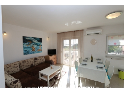 Das Haus hat zwei Wohnungen, jede Wohnung verfügt über zwei Schlafzimmer, Wohnzimmer mit Zustellbett für eine zusätzliche Person, Küche, Bad und Balkon mit herrlichem Meerblick . Im Hof ist ein Grill, der den Gästen zur Verfügung steht. Der Preis beinhaltet die Kurtaxe, Klimaanlage , Internetanschluss, Reinigung, Parkplatz, Bettwäsche und Handtücher. Check-in ab 14:00 Uhr und der Check-out bis 10:00 Uhr. Der Strand ist nur 100 Meter vom Haus entfernt.