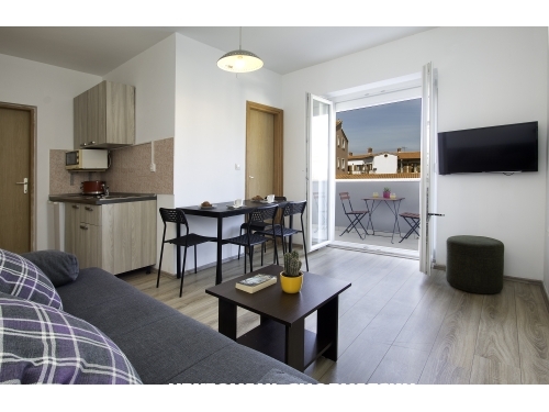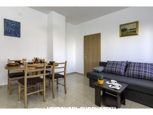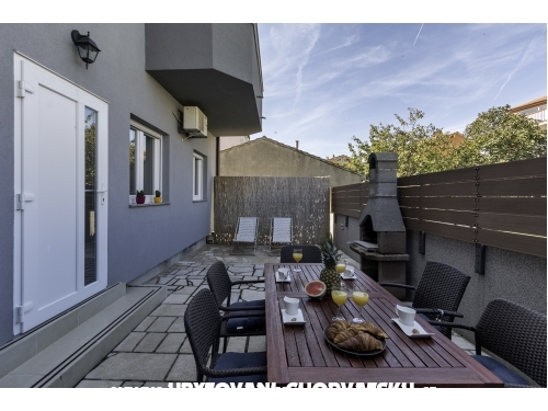 Haus Žagar ist eine Familie von der Ferienwohnung Žagar Besitz der Familie, und es wird in Medulin, kleinen touristischen Ort gelegen - heute ein moderner Urlaubsort. Es gibt vier Wohnungen im ersten Stock und drei im zweiten Stock, und es ist für 2+1 Personen. Jede Wohnung verfügt über: ein Schlafzimmer mit einem Doppelbett, Wohnzimmer mit kleine Küche und ein bequemen Sofa (1,50x2m). Im Erdgeschoss gibt es eine weitere Ferienwohnung mit Wohnzimmer und zwei Schlafzimmern für 4 Personen. Im Hof befindet sich ein schöne Tisch, Grill und Liegestühle. Ferner befindet sich im ersten Stock ein zusätzliches Einzimmerapartment für 2 Personen. Jede Wohnung hat schönes Bad und schöne Terrasse. Die Küche ist komplett ausgestattet, einschließlich Mikrowelle, Toaster und Kaffeemaschine. Jede Wohnung hat einen Parkplatz gewährleistet. Die Wohnung verfügt über Satelliten-TV, Wi-Fi Internet, und seine klimatisiert. Der Strand ist nur 500 Meter von der Villa Zagar. Es gibt Sand, Fels und verschiedene Arten von Stränden. Medulin ist eine Stadt mit 3000 Bürgern, und bietet einen dynamischen und erlebnisreichen Urlaub. Alles ist auf den Tourismus ausgerichtet. Es gibt eine Bank in der Stadt, die das ganze Jahr über arbeitet, sowie Geldautomaten, Post, Arztpraxen, Apotheke...