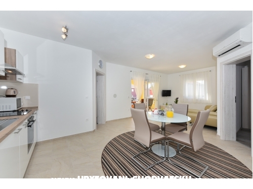 Die Wohnungen bestehen aus: 2 Schlafzimmer, Küche, Esszimmer, Wohnzimmer, Bad, Terrasse - nach Süden in Richtung Meer;