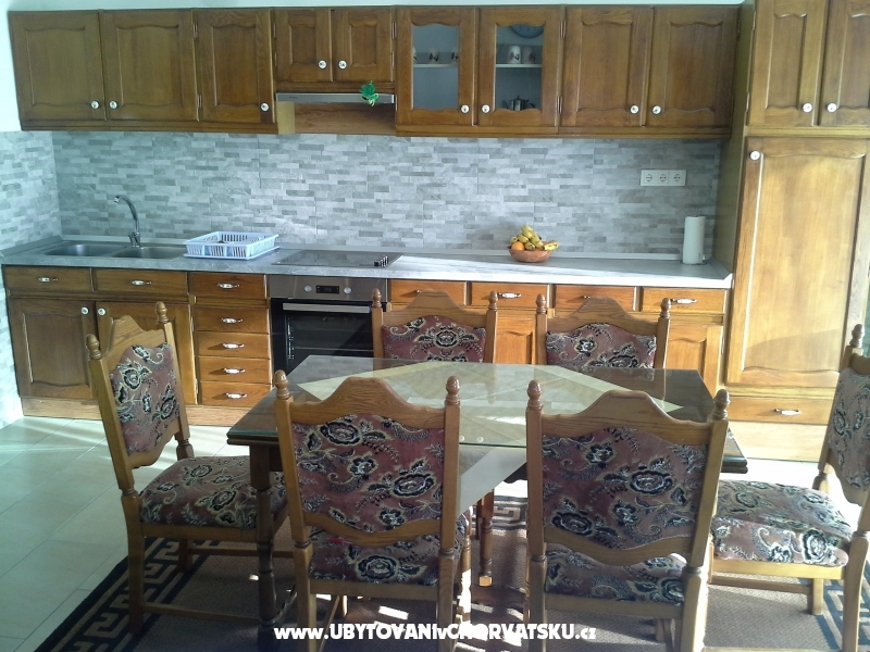 Unsere komfortablen Appartements hat eine Fläche von 115m2 und ist auf der ersten Etage. Seine Kapazität ist 6 +3 Betten. Die Wohnung besteht aus einem Geräte Küche mit Esszimmer, zwei Schlafzimmer mit Doppelbett, ein geräumiges Wohnzimmer mit zwei Einzelbetten, zwei Bäder, eines mit Badewanne andere mit Dusche und eine große Terrasse mit einem wunderbaren Blick auf das Meer. Wir besitzen zwei Garagen für Ihre Autos. Wenn Sie im Urlaub Ihr Haustier, informieren Sie uns im Voraus wissen. Wir bieten auch nach Vereinbarung, Tagesausflüge auf unserem Boot in der Nähe der Insel Brac wie Angeln, Schwimmen, Tauchen und am Ende Grill - frische Fisch aus der Adria.