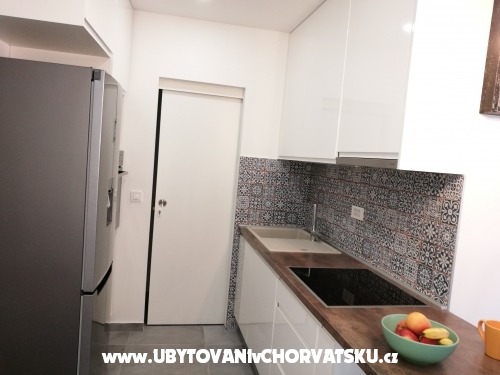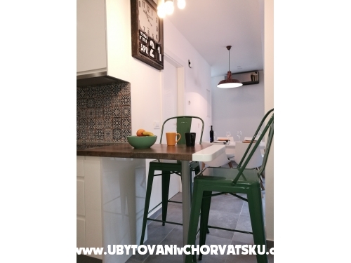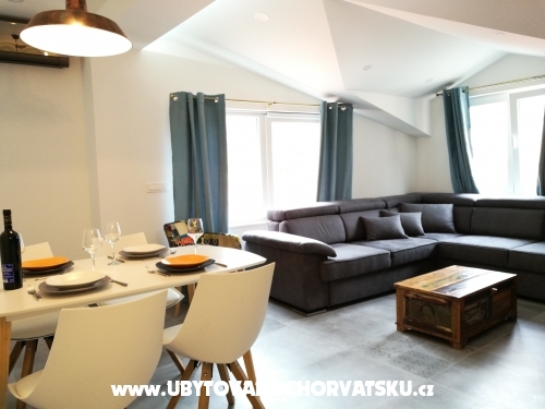 luxuriös eingerichtete moderne Wohnung im Zentrum von Omis. befindet sich 150 Meter vom Sandstrand entfernt. ist auf der zweiten Etage und hat einen separaten Eingang.