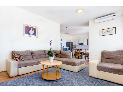 Die Apartments befinden sich 100 m vom Sandstrand Duce - Omis entfernt. Beide Apartments bieten Meerblick und liegen abseits der Straße, so dass Sie keinen Autolärm hören. Apartments bieten Ihnen eine komfortable Unterkunft für einen ausgezeichneten und ruhigen Urlaub. Die Stadt Omis ist nur 1,5 km von uns entfernt und Split ist 25 km entfernt. Hinter dem Haus befindet sich ein Kiefernwald, so dass Sie die Stille genießen können. Um das Gebäude herum gibt es ausreichend Parkplätze für alle Gäste, Grillabende und alles, was Sie für einen wunderschönen Urlaub in Dalmatien benötigen.