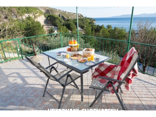 Wir befinden uns in Lokva Rogoznica - Ivašnjak Gebiet. Das erste Objekt ist ein 70m2 Haus auf zwei Etagen, mit zwei Schlafzimmern, einem großen Wohnzimmer und einer großen Terrasse mit Blick auf das Meer und den Pool.
