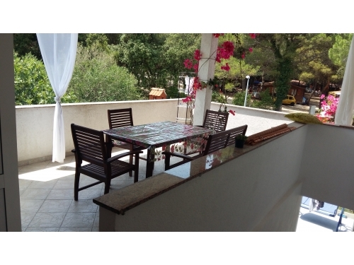 Das Haus, in einem Kiefernwald nahe dem Meer gelegen ist, verfügt jede Wohnung über eine große Terrasse und einen Parkplatz, Grill im Freien und Hof für Kinder zum Spielen!