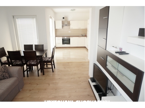 Our Pansion house Lanterna have 5 modern apartmants ideal for family vacation. We have our restorant just by the sea in center of Pakoštane and we offer breakfast - lunch and dinner. Price for breakfast is 5 euro / person , price for Breakfast & dinner is 15 euro / person. We serve breakfast in apartments but dinner and lunch we serve in our restorant. House is located in center of Pakoštane only 2 min walk from beach " Janica “ .In front of house is grill and table. Parking place for 10 cars.