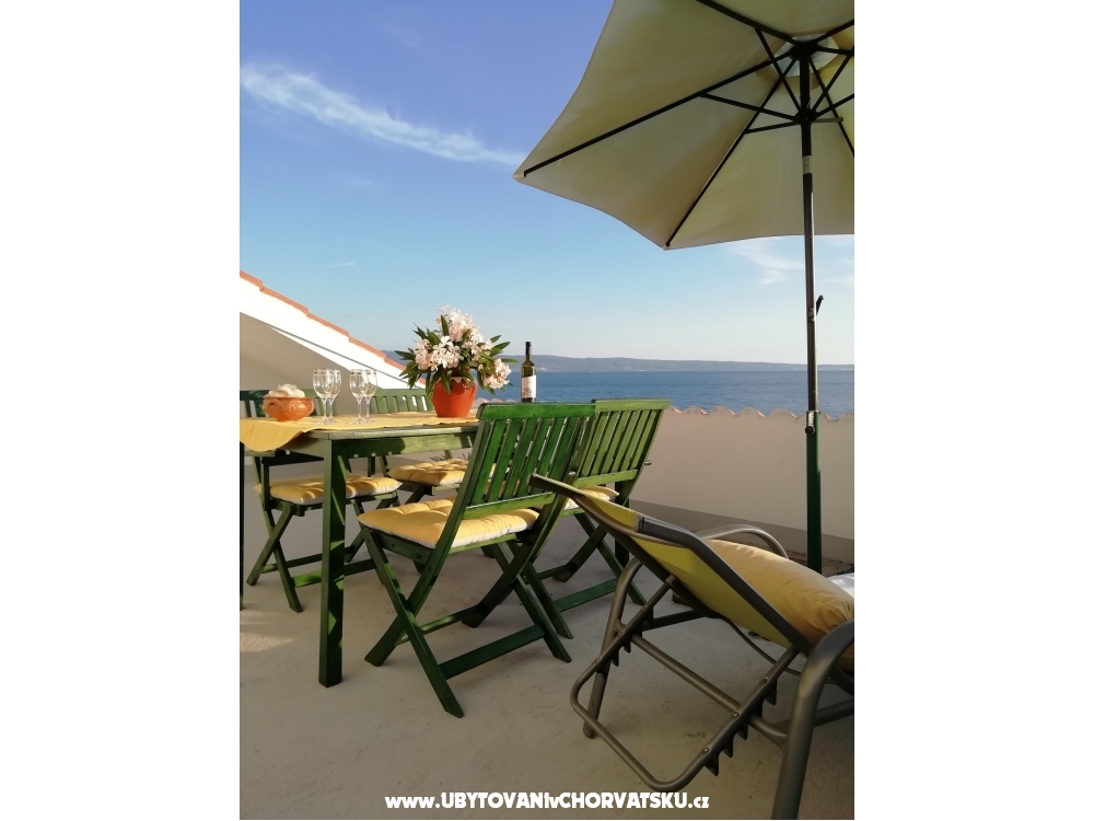 Die Wohnung befindet sich im Dachgeschoss eines Privathauses, mit einer Innenfläche von 35 m2 und einer großen Terrasse von 25 m2.Die Gäste können auch den 600 m2 großen Landschaftsgarten und kostenlose Parkplätze nutzen.Das Haus ist 10 km von Split entfernt 11 km von Omiš Der Ort selbst ist ideal für Urlaub oder Sommererholung sowie für alle anderen Arten von Ausflügen und Naturschönheiten, mit denen er umgeben ist!