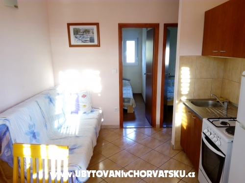 Parkmöglichkeiten im Schatten im Garten. Möglichkeit der Nutzung auf dem Hof. Die Wohnungen sind in der Stadt Celine 1,5 km südlich von Rogoznica entfernt.