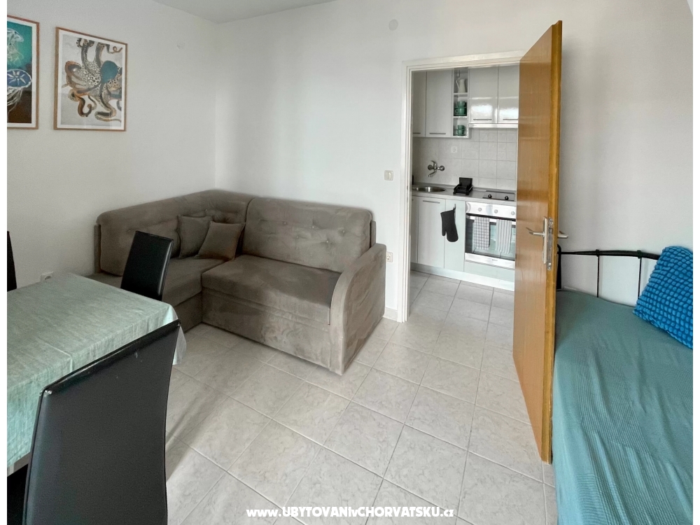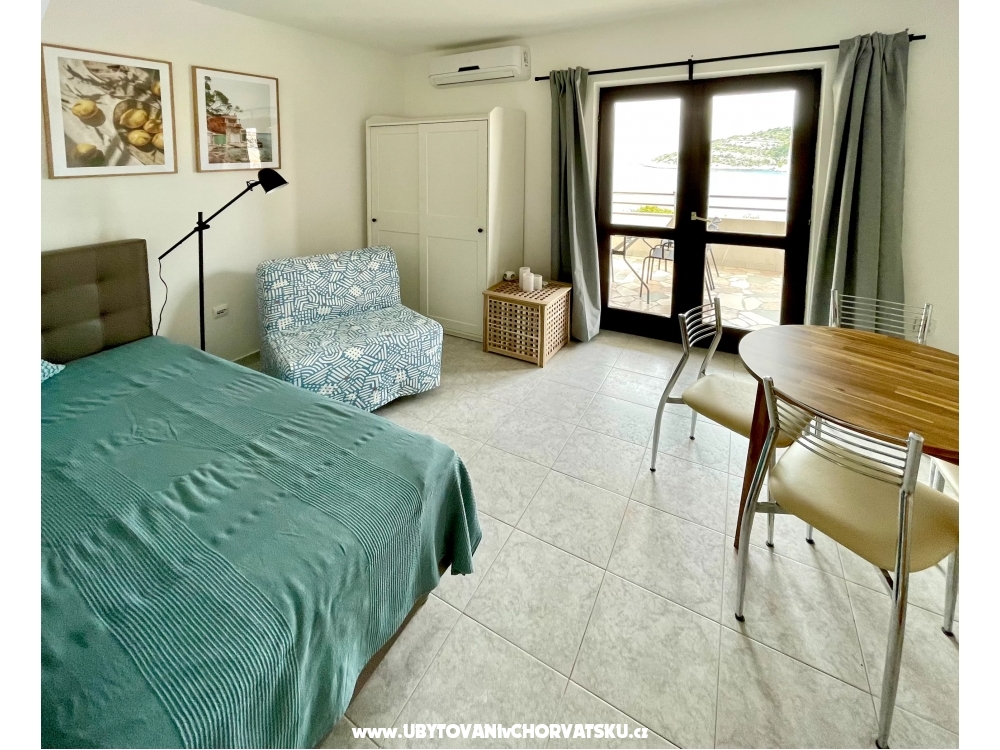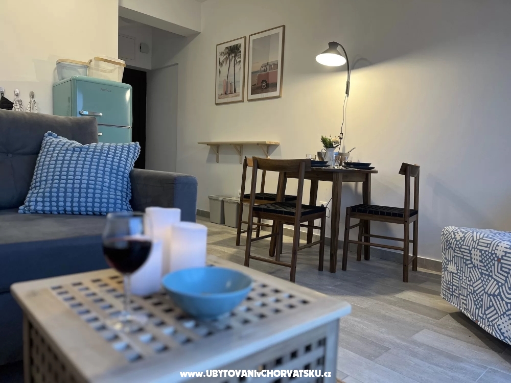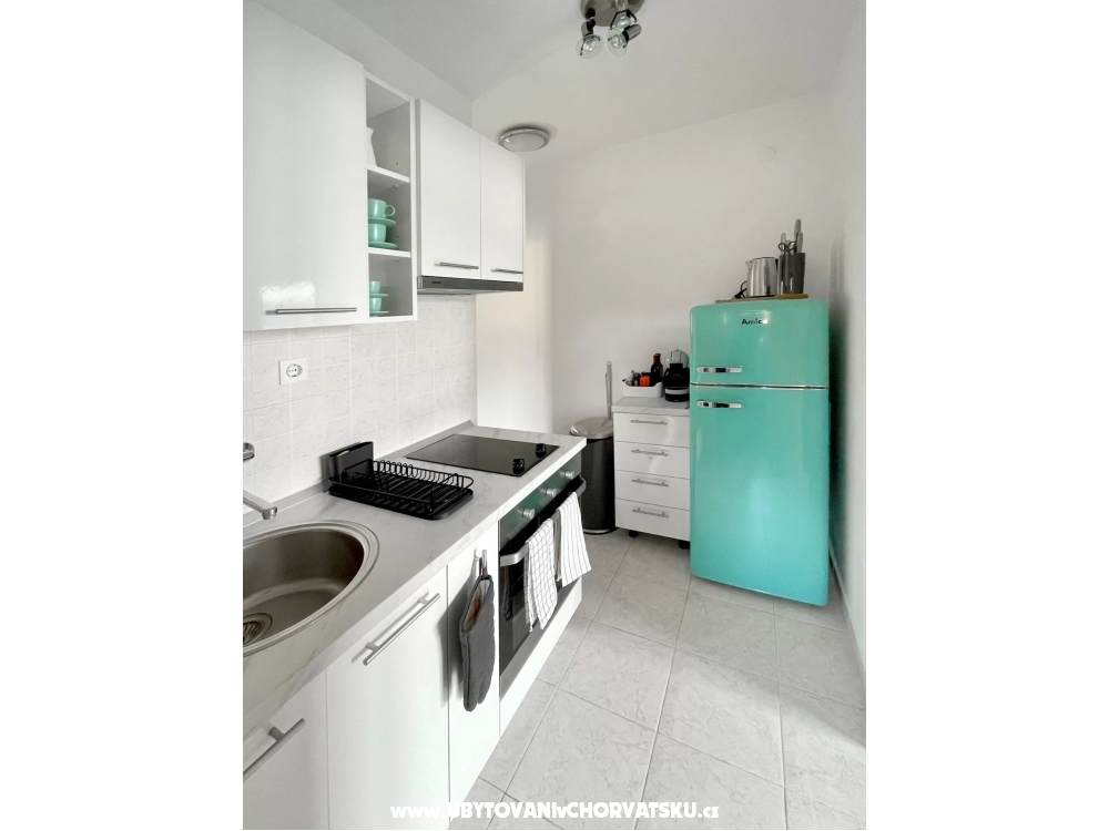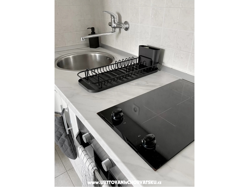 Im Erdgeschoss der Villa finden Sie einen Raum mit Küche und einen Tagungsraum, davor gibt es einen Grill und eine Sitzecke im Schatten der Pergola. Dieser Bereich steht allen Gästen der Villa zur Verfügung. Die Küche verfügt über eine professionelle Kaffeemaschine mit außergewöhnlichem Kaffee, einen Kühlschrank und eine voll ausgestattete Küche mit Backofen, Mikrowelle, Herd und Geschirrspüler. Der Gasgrill im Freien beschleunigt die Zubereitung von Mahlzeiten. Sie können auch den typisch kroatischen Ofen nutzen, der gleich um die Ecke ist. Wenn Sie es mit Holz und Holzkohle erhitzen, können Sie Köstlichkeiten auf echtem Feuer zubereiten und Feinschmecker können sogar Oktopus unter dem Ofen backen.