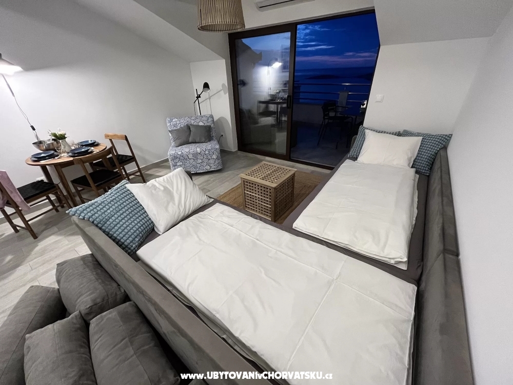 Sie können zwischen 4 größeren Apartments für 4-5 Personen mit Schlaf- und Wohnbereich oder 2 kleineren Studios für 3-4 Personen im Dachgeschoss wählen.
