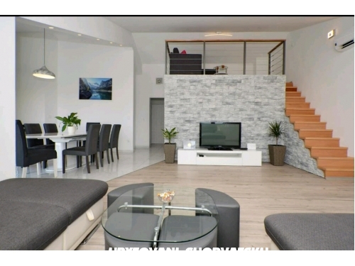 Das Apartment Lucija befindet sich in einem Vorort von Split (Solin). Die Wohnung ist neu luxuriös eingerichtet, verfügt über 2 Klimaanlagen. Die Küche ist komplett mit allen Küchengeräten ausgestattet. Die Wohnung verfügt über 3 Schlafzimmer mit Bad und Balkon. Im Wohnzimmer befindet sich ein 3,2 m langes Schlafsofa, das als Zustellbett dient. Auf der Galerie befindet sich ein Schlafsofa, das als Zustellbett dient. Die Wohnung verfügt über ein weiteres großes Badezimmer. Neben dem Balkon verfügt die Wohnung über eine große Terrasse mit herrlichem Blick auf die Stadt Split. Die Wohnung befindet sich ca. 1 km vom Zentrum von Solin entfernt, wo es Restaurants, Cafés, Supermarkt, Geldautomaten, Post, Bäckerei gibt. Es gibt auch den Schrein Unserer Lieben Frau von der Insel und eine Promenade entlang des wunderschönen Flusses Jadro bis zum alten Salona 2 km. zur festung klis auch 2 km. Das Apartment befindet sich im Zentrum des Diokletianpalastes von Split, am Wasser und zu allen Sehenswürdigkeiten von Split sowie zu den schönen Stränden und ist ca. 6-8 km entfernt.