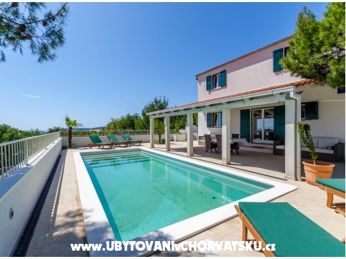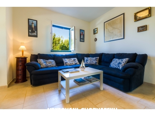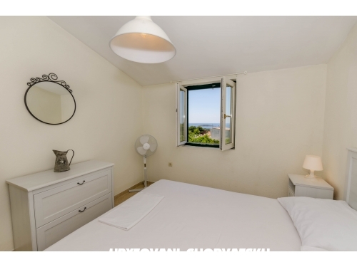 Ein Teil besteht aus zwei Wohnungen (eine im Erdgeschoss, die zweite auf der ersten Etage). Jede Wohnung besteht aus einem komfortablen Schlafzimmer mit Doppelbett, Küche mit neuen Elementen und Geschirr, Wohnzimmer mit TV und zusätzliche Sofa, Bad und eine große Terrasse mit Blick aufs Meer im Westen. Der zweite Teil ist auf zwei Etagen. Es besteht aus vier komfortable Schlafzimmer, zwei Bäder, eine große Küche mit neuen Elementen und Gerichte, geräumigen Essbereich, gemütliches Wohnzimmer mit TV und zusätzlicher Schlaf, geräumige Terrassen mit Meerblick nach Westen mit großen Garten mit mediterranen Bäumen und Pflanzen umgeben.