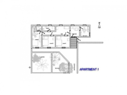 Das Gebäude ist für die Organisation der gemeinsamen Urlaub für 2-3 Familien perfekt. Ferienwohnung für 6 +1 Personen liegt im ersten Stock und hat 2 WC, 2 Küchen (größer und kleiner). Erdgeschoss-Wohnung hat eine Terrasse und ist direkt mit dem Meer zugewandt.
