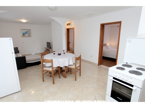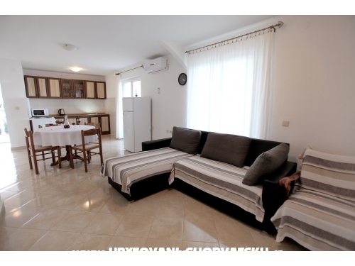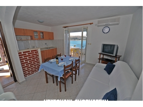 Apartments in einem Familienhaus , 3 km von Trogir, mit Meerblick , separate Terrassen, Gartennutzung rund um das Haus und die Nutzung des Grills. Mit Klimaanlage gegen eine Gebühr an.