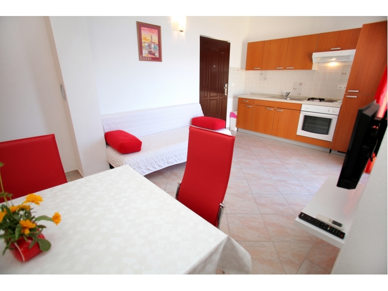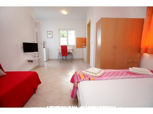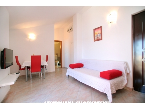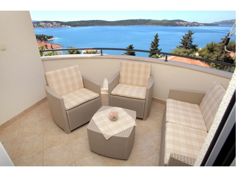 Neu erbaute exklusive Wohnungen CVITA basieren auf exzellenten Lage (Süd-West Seite der Insel Ciovo), 600 m weit vom alten Zentrum von Trogir (UNESCO-Stadt) und 200 m weit vom ersten Sandstrand entfernt. Unser Haus liegt ca. 7 km weit vom Flughafen Split entfernt. Für unsere Gäste haben wir Parkplätze vor dem Haus vorhanden. Wir sind das ganze Jahr über geöffnet. Zwei der drei Wohnungen (2 +2) sind auf der zweiten Etage und die dritte auf dem Erdgeschoss und kann bis 4 Person zu treffen. Wohnungen verfügen über: ein Schlafzimmer, Wohnzimmer mit Schlafcouch für 2. weitere Personen und Küche, Bad, Balkon mit herrlichem Meerblick, Klimaanlage, WiFi-Internetzugang und SAT / TV. Studio-Wohnung im Erdgeschoss (A2 +1) hat Schlafzimmer mit Zusatzbett, Bad, Küche, Klimaanlage, WiFi-Anschluss und SAT / TV. Wohnung 5 ist in einem anderen Haus (3 m) im Erdgeschoss (3 Schlafzimmer, 2 Bäder, Wohnzimmer mit Schlafcouch für 1. Weitere Person und Küche, großer Balkon mit wunderschönem Blick aufs Meer, Klimaanlage, WiFi-Internetzugang und TV befindet ). Die Kurtaxe ist im Preis inbegriffen. Gesicherter Flughafentransfer Flughafen. Möglichkeiten für den Kauf hausgemachtes Olivenöl, Möglichkeit der Anmietung eines Fischerboot, Möglichkeit der Bestellung Abendessen mit live Musik. Shop ist ca. 200 m, Bars, Post und Apotheke ca. 600 m weit. Wir sehen uns!
