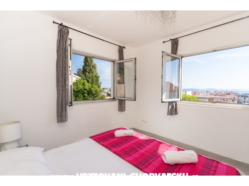 Es gibt viele Dinge, die in dieser Region zu tun, so kommen Sie und genießen! Villa Roza liegt im Süden westlichen Teil der Insel Ciovo (verbunden durch eine Brücke mit Trogir) in einer ruhigen Lage in der schönen Gegend der Stadt (Süd-Westseite der Insel Ciovo) gelegen Es gibt zwei Wohnungen 4 +2 -. Zwei Schlafzimmer, Wohnzimmer für 2 weitere Personen, SAT Küche, Bad, Balkon mit wunderschönem Blick aufs Meer, Klimaanlage, wi-Fi Internetanschluss, Sat / TV, Parkplatz ..... und zwei Appartements 2 +2 - ein Schlafzimmer + Wohnzimmer.