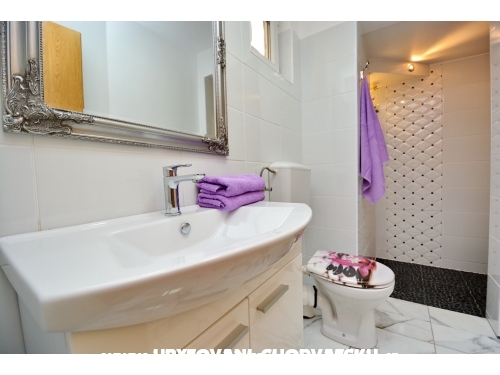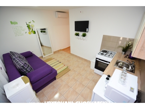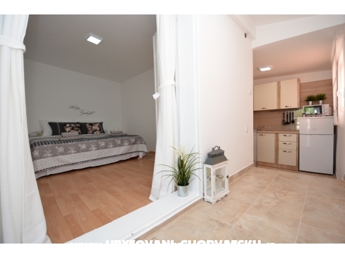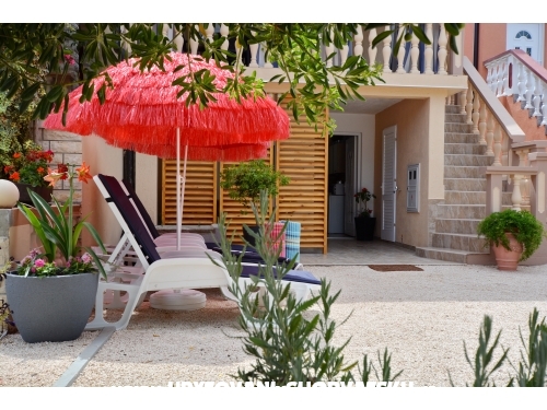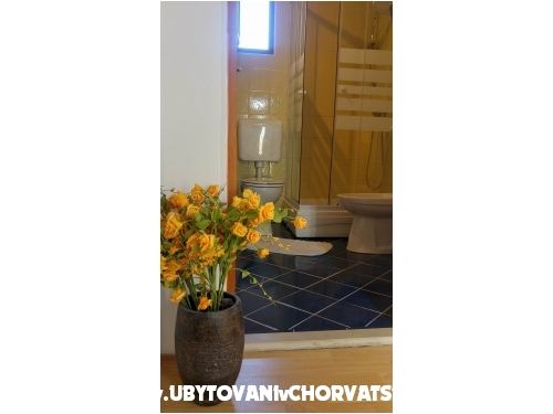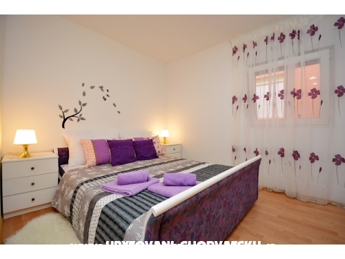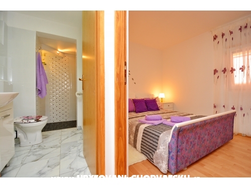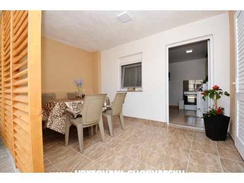 Apartment Lavandel 2 + 2 hat 50m2 Wohnfläche und 15 m2 überdachte Terrasse. Schlafzimmer mit Doppelbett, Wohnzimmer mit ausziehbarem Bett, Küche, Bad mit Dusche, Satelliten-Programm, Klimaanlage, gratis WiFi.