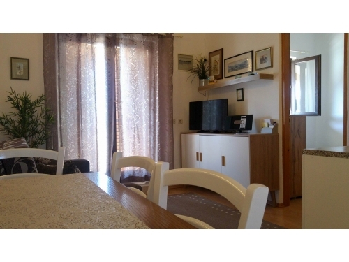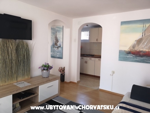 Apartment Maestral 2 + 2 hat 40m2 Wohnfläche und 25 m2 überdachte Terrasse. Schlafzimmer mit Doppelbett, Wohnzimmer mit ausziehbarem Bett, Küche, Bad mit Dusche, Satelliten-Programm, Klimaanlage, gratis WiFi.