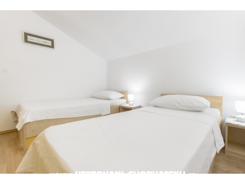 Apartments in Vodice - Dalmatien (drei Sterne). Die Apartments verfügen über eine Küche mit Speisesaal, Schlafzimmer, Bad, Terrasse, Klimaanlage, Grill, Sat-TV, Parkplatz. Entfernung zum Meer 450 Meter (5-10 Minuten zu Fuß), Abstand von der Mitte 1100 Meter (20 bis 25 min zu Fuß).