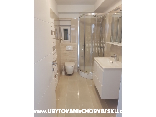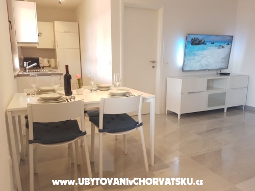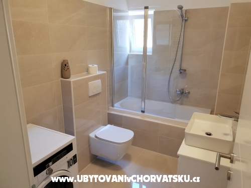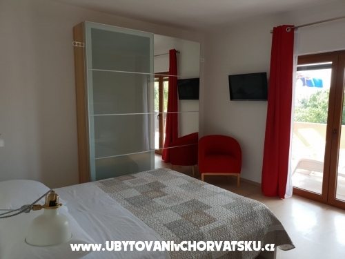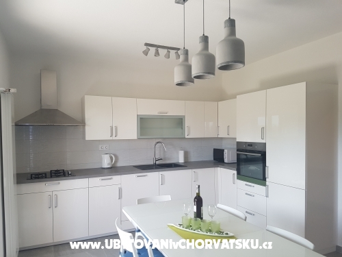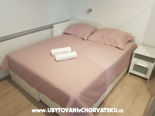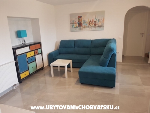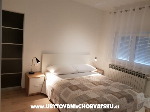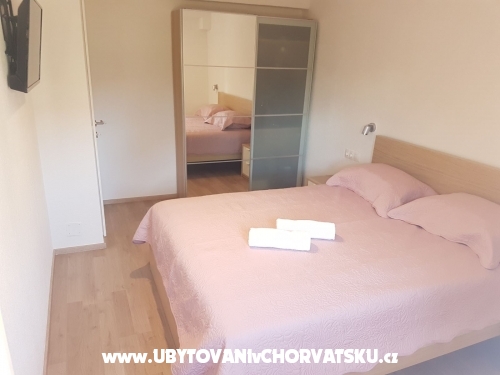 Erste Wohnung (6 + 2) hat 95 m2. Es befindet sich im ersten Stock eines Familienhauses und verfügt über 3 Schlafzimmer, von denen zwei über ein Doppelbett und ein eigenes Bad verfügen. Ein Zimmer verfügt über ein Doppelbett und ein Zustellbett auf der Etage. Das Apartment verfügt außerdem über ein Hauptbadezimmer mit Waschmaschine, eine voll ausgestattete große Küche mit Kühlschrank und Gefrierfach, Geschirrspüler, Backofen, Mikrowelle, Wasserkocher und Kaffeemaschine, ein Wohnzimmer mit Sat-TV und TV Andorid sowie einen großen Balkon mit Meerblick. Jedes Zimmer und Wohnzimmer verfügen über eine Klimaanlage.