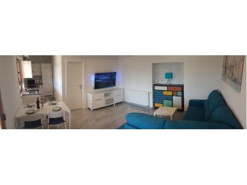 Die zweite Wohnung (4 + 1) hat 53 m2. Es befindet sich im Erdgeschoss eines Familienhauses und verfügt über zwei Schlafzimmer mit Doppelbetten. Das Apartment verfügt zudem über ein Badezimmer mit Waschmaschine, eine voll ausgestattete Küche mit Kühlschrank und Gefrierfach, einen Backofen, eine Mikrowelle, einen Wasserkocher und eine Kaffeemaschine sowie ein Wohnzimmer mit einem Schlafsofa für eine Person. Wohnung verfügt über Sat-TV, TV Android, Klimaanlage und Wi-Fi. Vor der Wohnung befindet sich eine große Terrasse und neben der Wohnung befindet sich ein Grill mit einer überdachten Sitzecke.