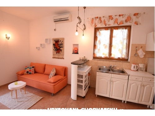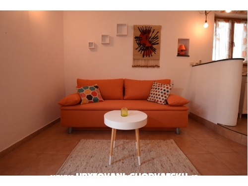 Die Wohnung besteht aus einem Schlafzimmer mit Doppelbett, Wohnbereich mit Sofa-Bett, wo zwei Personen, eine kleine Küche sehr gut ausgestattet, und Bad mit Dusche schlafen.