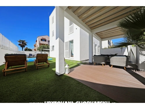 Diese Villa wird Sie beeindrucken – sie ist voller Licht, hat einen großen Außenbereich, einen Blick auf das Meer von allen Etagen, Klimaanlage in allen Appartements, eine Sommerküche mit Grill und eine ausgezeichnete Umgebung mit garantierter Privatsphäre. Hier werden Sie unvergessliche Momente verbringen: Sie werden auf der Terrasse Kaffee trinken während Sie Schiffe und Segelboote betrachten, die in die Bucht und die Marina anlaufen oder aus ihnen auslaufen und Leute, die die Attraktionen von Zadar – den Gruß an die Sonne und die Meeresorgel – besuchen.