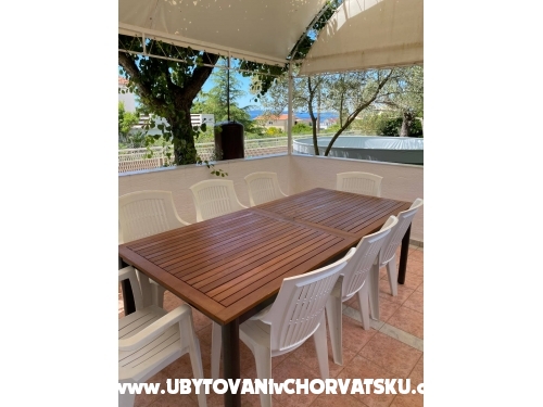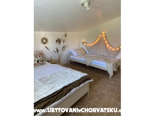 Sind Sie auf der Suche nach einem ruhigen Urlaub mit familiärem Hintergrund? Wir bieten Wohnung Villa zur Miete in Kroatien in der Nähe von Zadar. Die Villa hat drei Appartements mit 19 Betten und die meisten Schlafzimmer haben Meerblick (7 Schlafzimmer, 4 x Zusatzbett, 4 x Bad mit WC, 3 x Küche, 2 x Terrasse mit Sitzgelegenheit). Die Villa hat einen eigenen Garten mit kleinem Swimmingpool und Steingrill. Das Meer ist über einen direkten Weg vom Haus aus ca. 100 m erreichbar, der Strand ist felsig mit einem kleinen Steg (geeignete Schuhe für das Wasser). Wir bieten auch die Möglichkeit, ein Motorboot für Wassersport zu mieten (kleiner Bootsführerschein erforderlich) und eventuell ein Paddleboard zu mieten. Wenn Sie eine Fahrt durch die Gegend machen wollen, bieten wir Ihnen den Verleih von drei Motorrollern an. Der Weg zum alten Zadar ist zu Fuß durch den Wald oder mit dem Fahrrad ca. 1 km vom Haus entfernt möglich. Der Minimarkt ist ca. 500 m entfernt und direkt daneben befindet sich ein Brunnen mit Quell-Trinkwasser.
